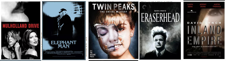 《穆赫蘭道》電影海報(bào)、《象人》電影海報(bào)、《雙峰》電影海報(bào)、《橡皮頭》電影海報(bào)、《內(nèi)陸帝國(guó)》電影海報(bào)
