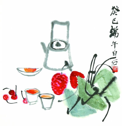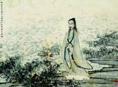 端午節(jié)的發(fā)端與楚文化緊密相連。楚文化有著一種神秘的氣氛,巫山云夢(mèng),幽谷茂林,讓人們多一分神思仙念。民俗端午節(jié)是為了紀(jì)念偉大的愛(ài)國(guó)詩(shī)人屈原,藝術(shù)史上也留下很多以屈原為題材的經(jīng)典畫作。在文人畫家的視野中,屈原是忠君愛(ài)國(guó)的典范。在明代畫家朱約佶的筆下,巖下仰天而坐的屈原傲骨臨風(fēng),擺脫了儒家對(duì)屈原的“夫子”化的詮釋;近代畫家傅抱石筆下,披頭散發(fā)的屈原望向滔滔江水,悲憤之情油然而生,江岸的雜草荒蕪、遠(yuǎn)景的水天蒼茫,不免讓人誦出《天問(wèn)》的蒼涼歌調(diào);當(dāng)代畫家王西京筆下的屈原,有了更明確的風(fēng)骨格調(diào),大膽灑脫的勾線與明快清晰的留白,彰顯了中國(guó)人物畫的精湛技藝以及筆墨黑白的獨(dú)特魅力。這些畫充分體現(xiàn)了士人風(fēng)骨與悲憤情懷,鐵骨錚錚的端午粽色滲透著對(duì)屈原精神大美至頌的祭拜。