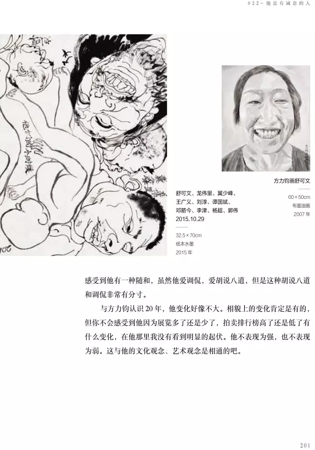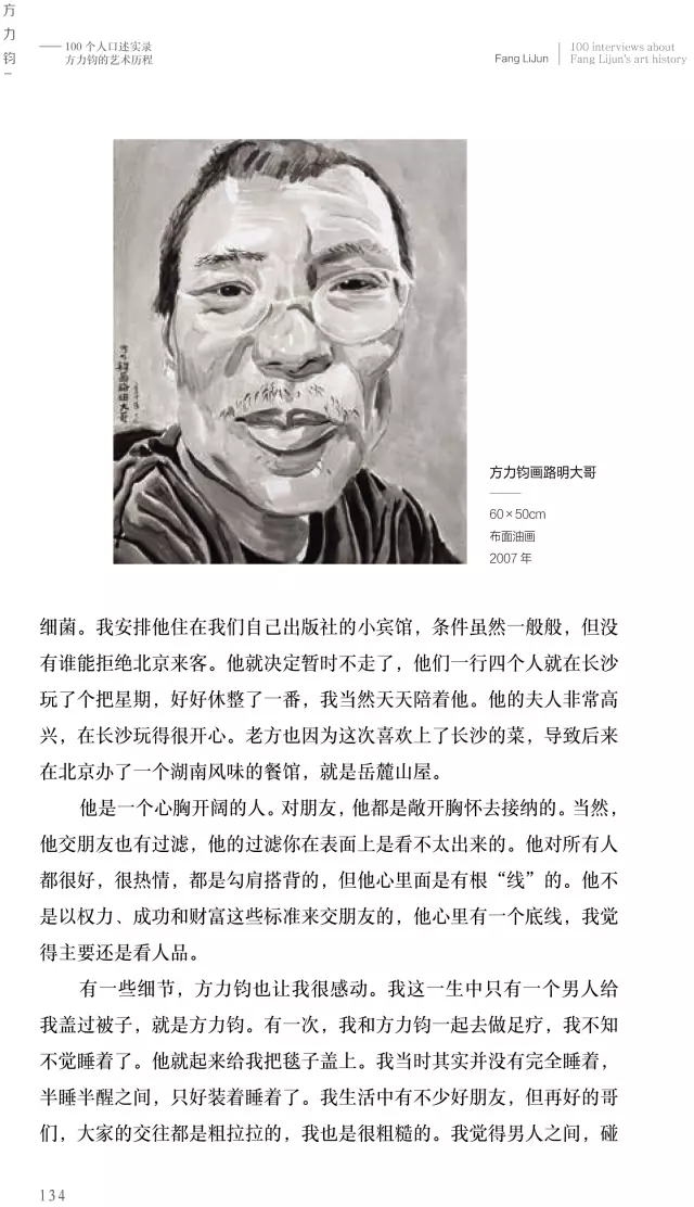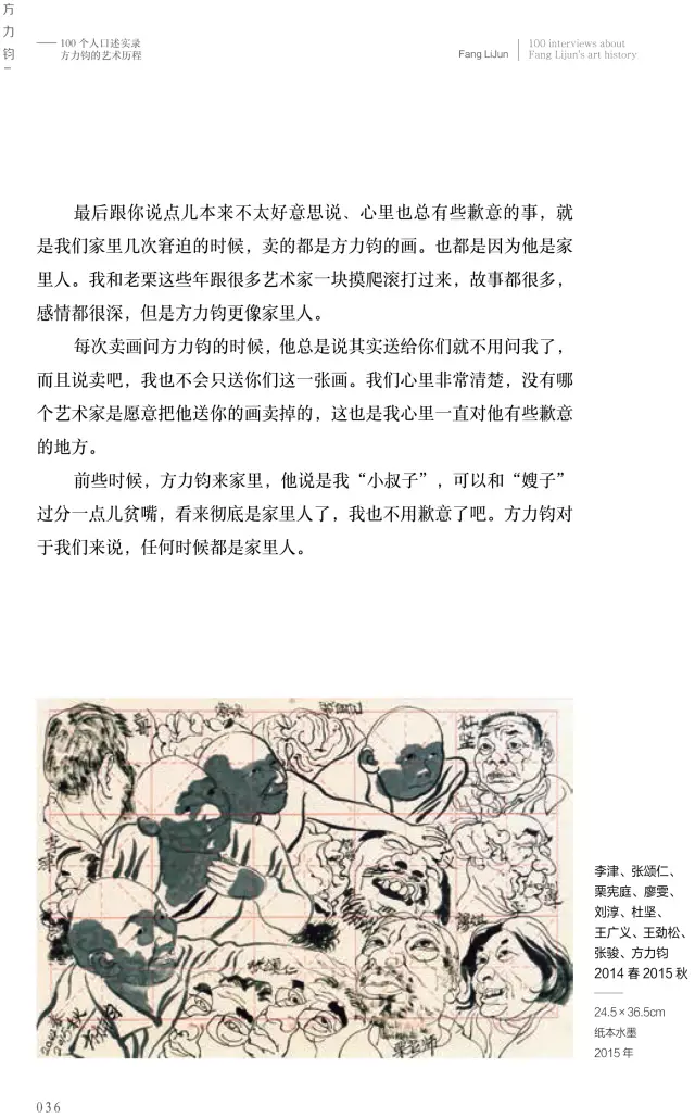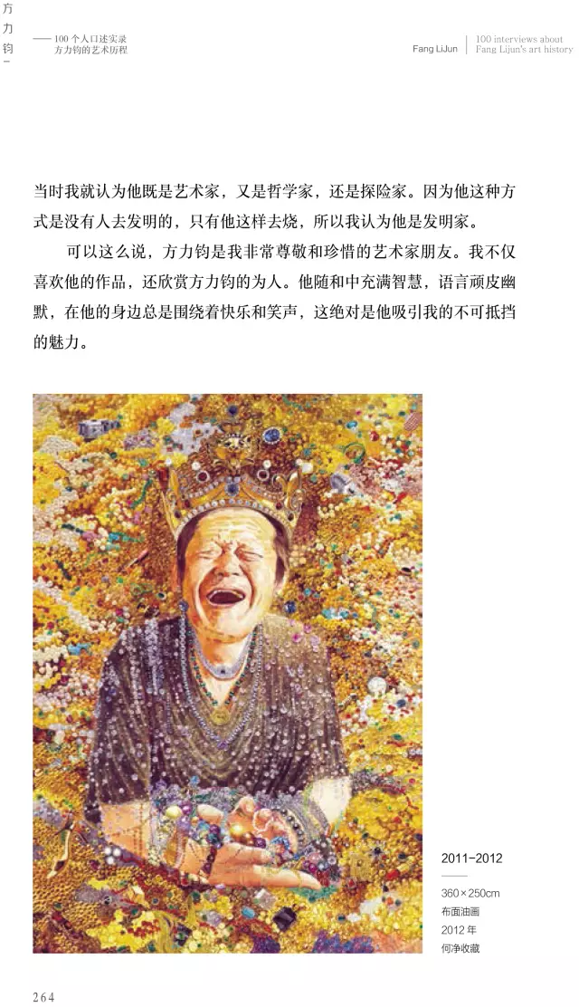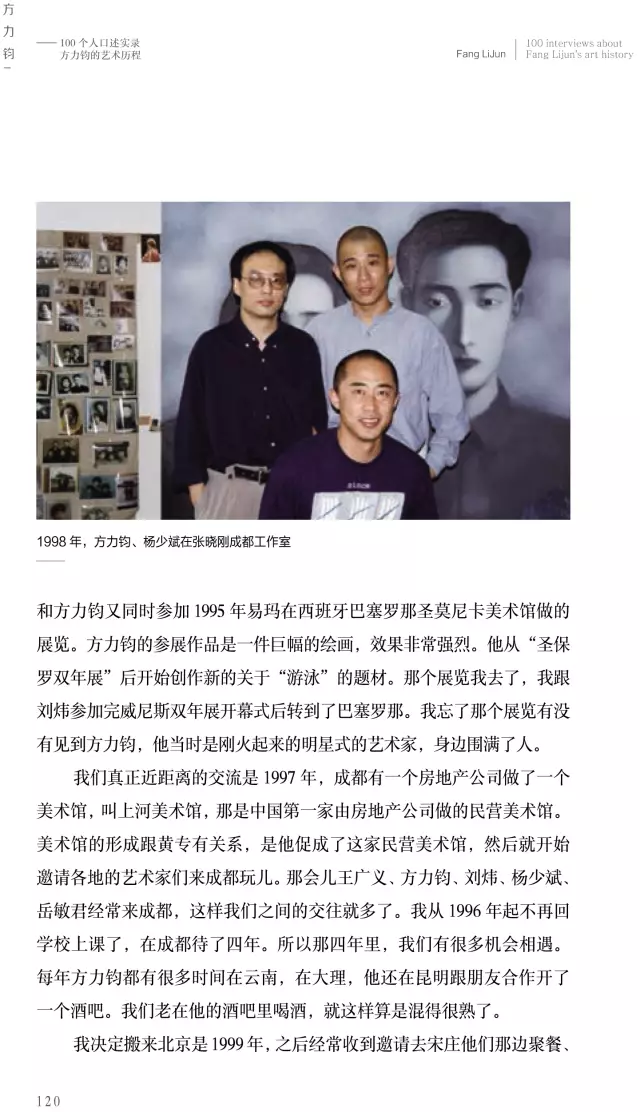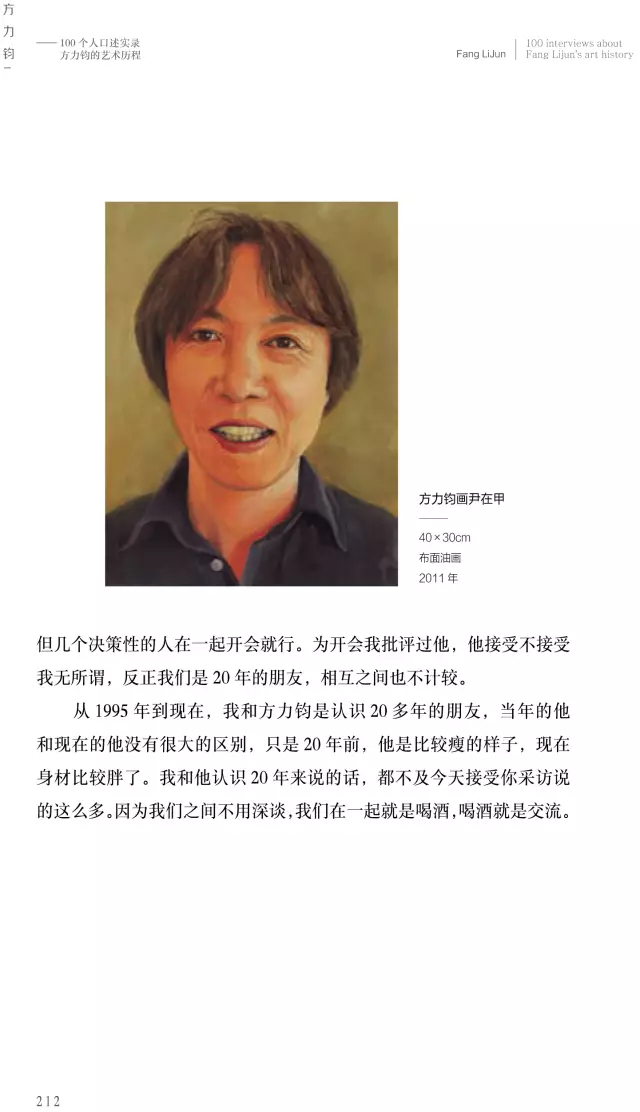 這本《方力鈞——100個(gè)人口述實(shí)錄方力鈞的藝術(shù)歷程》的書采訪了上百位嘉賓,我希望通過這100個(gè)人物口述實(shí)錄的講述,用100條縱橫交錯(cuò)的人物線索,刻畫出一個(gè)優(yōu)秀藝術(shù)家有血有肉的成長(zhǎng)歷史,讓讀者全方位地了解方力鈞多維度的藝術(shù)人生和他所處的那個(gè)時(shí)代,以及由他引發(fā)的藝術(shù)現(xiàn)象、藝術(shù)事件是如何發(fā)生和發(fā)展,并構(gòu)成一部中國(guó)當(dāng)代藝術(shù)史。