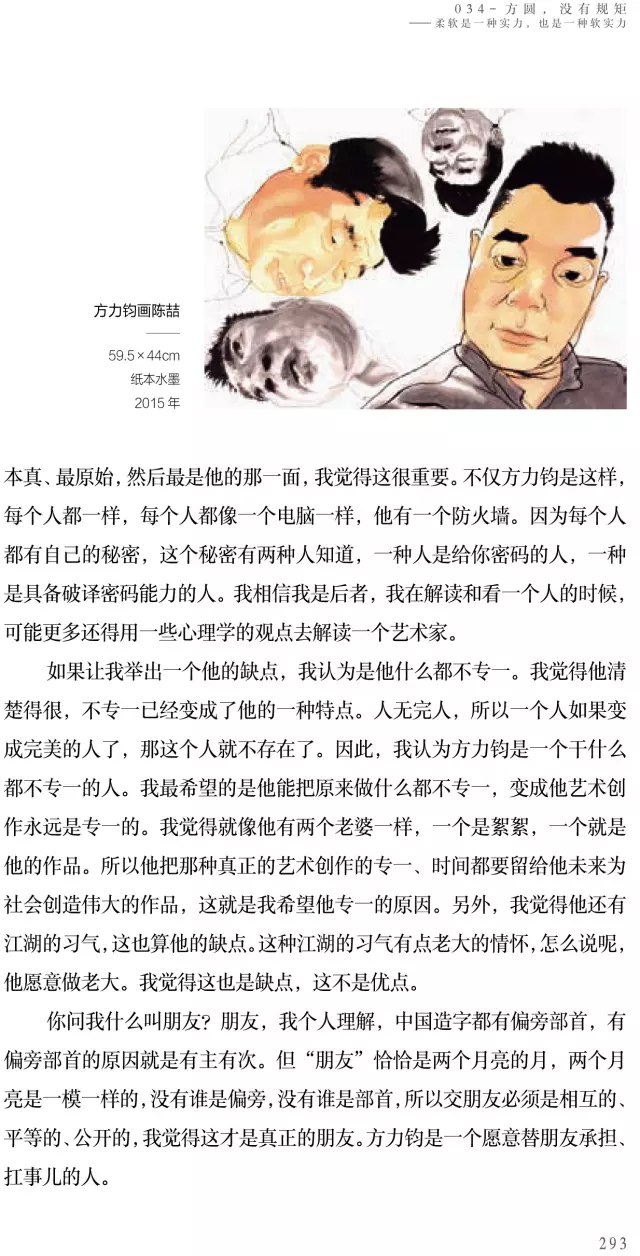 用了一年的時(shí)間寫作《方力鈞——100個(gè)人口述實(shí)錄方力鈞的藝術(shù)歷程》這本書,在采寫過程中,我發(fā)現(xiàn)這種“采訪體”的寫作吸引了我,提問是引子,傾聽是技巧,吸收是轉(zhuǎn)換,提煉是總結(jié),書寫是記錄。敘述故事的秘密就是把原本稀疏平常的東西變得妙趣橫生,把原來不起眼的故事變得意味深長(zhǎng)。我相信好的采訪是彼此生命間的往來,認(rèn)識(shí)自己越深,認(rèn)識(shí)他人越深,反之亦然。我珍視每一位采訪對(duì)象,這是一種特殊的緣分。