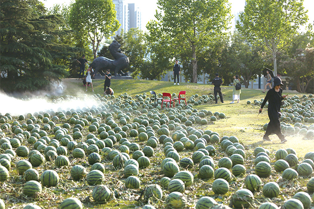 “2017中央美院畢業(yè)季”以“約定”為主題,位于主教學(xué)樓前的大片“瓜田”是本次畢業(yè)季學(xué)校帶給學(xué)生的第一份驚喜。3500個西瓜在當(dāng)日凌晨被一車車運進校園,并在一夜之間布滿草地。“開花結(jié)果”“碩果累累”“頂呱呱”,除了“瓜田“這份意涵豐富的驚喜,學(xué)校還為每位畢業(yè)生準(zhǔn)備了由各個學(xué)院老師們精心挑選并隨機送出的禮物,一張鮑勃·迪倫的黑膠唱片、一幅老師親手制作的作品、一塊學(xué)校美術(shù)館的墻磚,無論何種形式的禮物,當(dāng)拆開包裹的時候,學(xué)生臉上都洋溢著同樣的驚喜,而這份禮物也會同他們對母校的美好回憶一起被永久珍藏。