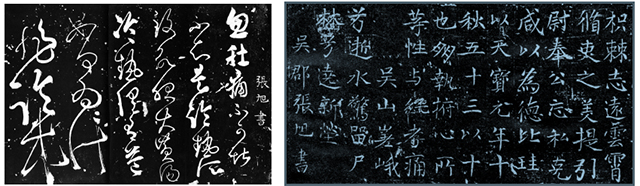左:張旭《肚痛帖》 右:張旭《嚴(yán)仁墓志》
