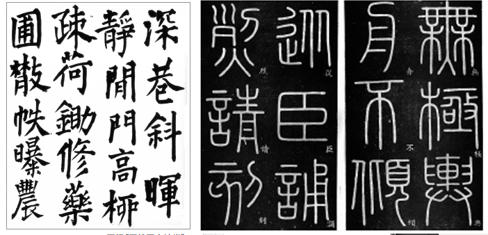 左:王鐸《王維五言詩卷》 右:徐鉉摹《嶧山刻石》