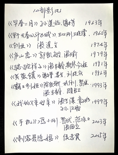 我還記得與逄小威先生討論達成這樣的布展計劃之后,他回到家中,很快就寫好了一份電影作品單給我——他是手寫的這份電影單,字寫得漂亮大氣。逄小威一部部電影給我介紹,仔細解釋他最終選擇這十部作品的考慮,并且非常謙遜地詢問我的建議。我深深折服于逄小威對于中國電影史如數(shù)家珍般的熟悉和他對這些電影作品的深刻理解,更是打心眼里欽佩他的認(rèn)真、勤奮和謙遜、真誠。