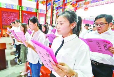 2017年“五四”青年節(jié)當(dāng)天,福建省福安市組織年輕人開展“家風(fēng)講堂”活動(dòng),傳承和弘揚(yáng)優(yōu)秀家規(guī)、家訓(xùn)和家風(fēng)。新華社發(fā)