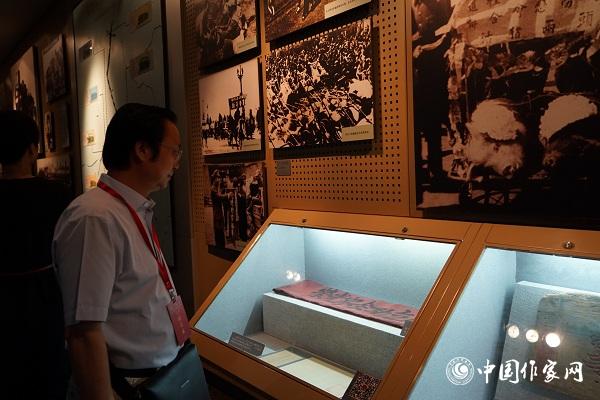 9日上午,采訪團(tuán)來(lái)到遼沈戰(zhàn)役紀(jì)念館,紀(jì)念館由朱德元帥親筆題寫?zhàn)^名。從戰(zhàn)史館、支前館、英烈館到全景畫館,一張張黑白照片、一件件歷史文物將每個(gè)人拉回到那段艱難的革命歷史歲月。紀(jì)念館中,一個(gè)被保存著的枯樹(shù)引起了大家的注意。這棵樹(shù)曾為戰(zhàn)士擋住許多槍炮,被命名為“英雄樹(shù)”。英雄樹(shù)的表面仍殘留著許多槍眼和彈孔,團(tuán)員們站在英雄樹(shù)前,心情久久不能平靜。團(tuán)員陳亮感慨地說(shuō):“這棵樹(shù)曾被槍炮打過(guò),雖有些干枯,卻始終沒(méi)有腐朽,它讓我們敬畏?!焙髞?lái),陳亮還為英雄樹(shù)作了一首詩(shī)。他說(shuō),看到實(shí)物實(shí)景,內(nèi)心常常受到觸動(dòng),創(chuàng)作的靈感也會(huì)瞬間迸發(fā)。寫作就是為了不遺忘。團(tuán)員裔兆宏有同樣的感受,他說(shuō),參觀革命根據(jù)地現(xiàn)場(chǎng)遺址,對(duì)于摒棄歷史虛無(wú)主義,真實(shí)再現(xiàn)革命歷史,創(chuàng)作出有歷史感、有情懷、有溫度的作品具有重要的意義。