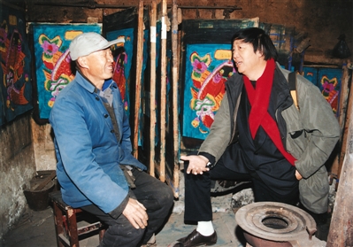 馮驥才(右)在普查中發(fā)現了天津楊柳青鎮(zhèn)南宮莊子唯一活態(tài)的“粗活”年畫藝人王學勤(左)。
