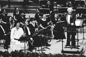 永儒布交響作品音樂會圓滿成功,永儒布(右一)向觀眾致謝。 資料圖片