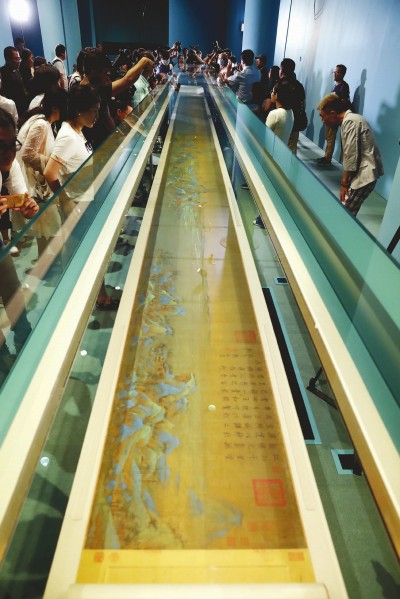 值得一提的是,有感于此前 《石渠寶笈特展》 引發(fā)長達(dá)14小時(shí)排隊(duì)以及萬人“故宮跑”的觀展“盛況”,故宮此次專為 《千里江山圖》 定制了一個(gè)超長展柜,并將其置于開闊空間獨(dú)立展示,以提升觀展體驗(yàn)。
