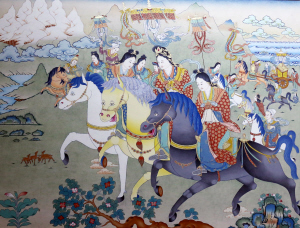 唐卡藝術(shù)是藏族特色藝術(shù)之一,其繪制程序復(fù)雜,包括制作畫布、構(gòu)圖起稿、著色染色、勾線定型、鋪金描銀、開眼、縫裱等一整套工藝程序。它不僅體現(xiàn)了藏族的繪畫技法,也呈現(xiàn)了其他民族繪畫藝術(shù)的特點(diǎn),是多民族文化交流借鑒的繪畫藝術(shù)成果。