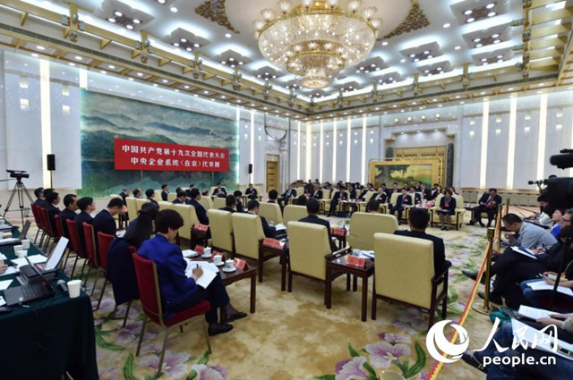 中央企業(yè)系統(tǒng)(在京)代表團(tuán)討論現(xiàn)場(chǎng)(人民網(wǎng)記者 翁奇羽 攝)