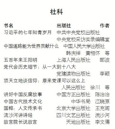 優(yōu)秀暢銷書(shū)榜分榜·2017年9月