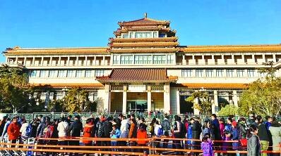 中國美術(shù)館門口排隊(duì)的觀展群眾。馬力攝/光明圖片