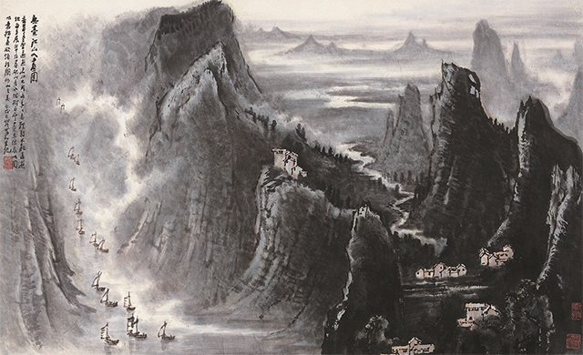 11月30日,由中國國家博物館、中國美協(xié)、中央美術(shù)學(xué)院、北京畫院、李可染藝術(shù)基金會聯(lián)合主辦的“紀(jì)念李可染誕辰110周年——墨天神境·李可染最后十年作品展”在國博開幕。展覽精選了李可染1979年至1989年間創(chuàng)作的繪畫及書法作品162幅,并等比例復(fù)原了其晚年三里河寓所的畫室——師牛堂,集中體現(xiàn)了藝術(shù)家晚年的藝術(shù)主張和筆墨成就。開幕式上,李可染的家屬將其重要書法作品《書文天祥〈戲馬臺詩〉》捐贈給國博收藏。此次展覽將持續(xù)至2018年1月3日。圖為李可染作品《無盡江山入畫圖》 (王 覓)