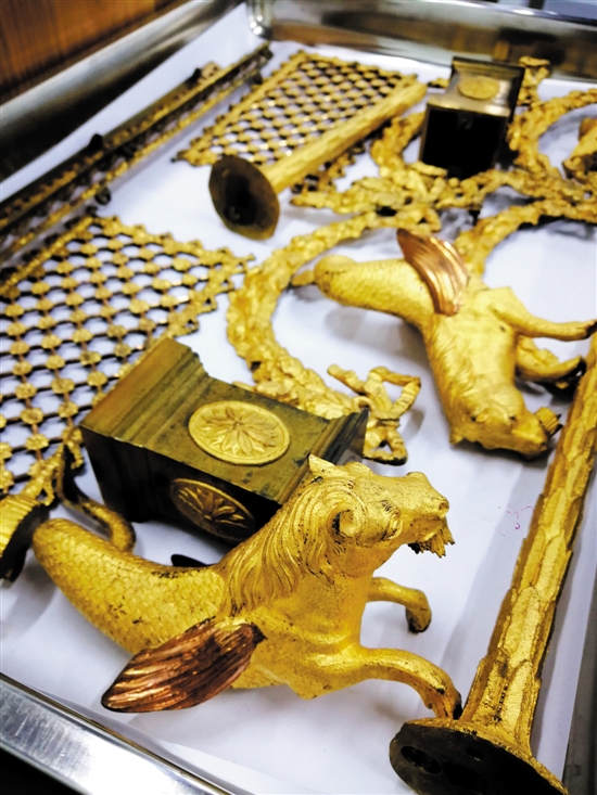 修復(fù)現(xiàn)場(chǎng)的古董鐘零件 圖/林清清