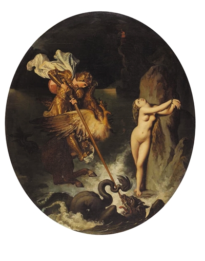這幅油畫作品取材自16世紀(jì)意大利詩人阿里奧斯托的長篇敘事詩《瘋狂的羅蘭》中所描繪的情節(jié),講述了安吉莉卡被囚禁在淚之島上,正在危難之時(shí),勇士洛哲騎著半鷹半馬的坐騎趕來營救安吉莉卡。館長維吉耶-杜泰伊說,安格爾這幅作品中,安吉莉卡的身體被描繪得十分優(yōu)美,又有悖于自然規(guī)律,“一個(gè)人的頭不可能扭成安吉莉卡那個(gè)樣子,她的臀部也過大,但是整個(gè)曲線就像樂符一樣優(yōu)美,與洛哲的動(dòng)作、神獸的曲線都有一種呼應(yīng)。”