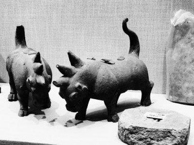 數(shù)不勝數(shù)的珍貴文物,整整占據(jù)了鄭州博物館的兩層展廳,如果不是三樓石刻展廳的展品太重,恐怕也要給這次展覽“讓路”。展覽按照中線工程由南而北的流向,大致分為南陽、平頂山、許昌、鄭州、焦作、新鄉(xiāng)、鶴壁、安陽等區(qū)域,每個地域的重要遺址都有介紹和代表性文物的展示。其中,既有刷新歷史、具有極高學術價值的銘文禮器,戰(zhàn)爭使用的各種鋒利武器,也有各個時期古人的日常生活、生產(chǎn)用具、金飾等,還有萌態(tài)百出的動物俑等陶器,特別是各種狗俑、貓頭鷹俑等。