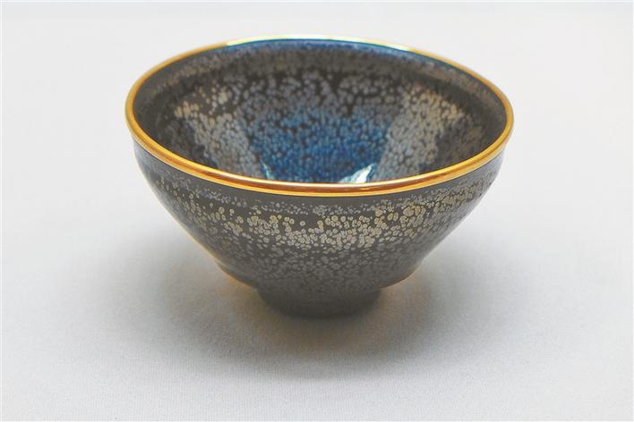大阪市立東洋陶瓷美術(shù)館收藏的宋代建窯“油滴天目”。據(jù)說(shuō)是豐臣秀吉養(yǎng)子豐臣秀次用過(guò)的茶碗。