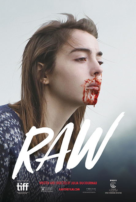 法國電影《生吃》同樣是披著恐怖片的皮囊,講述成長的痛楚。與《當怪物來敲門》不同的是,《生吃》沒有超現(xiàn)實橋段,少女生吃血肉的情節(jié)雖然夸張,也完全可以是真實的。此片的影像和它的名字一樣生猛:一個出身于素食家庭的少女,在去大學讀獸醫(yī)專業(yè)后,逐漸按捺不住對新鮮血肉的口腹之欲,更令人不安的是,同校就讀的姐姐早已遵循內(nèi)心的渴望成了食人者,還想教會妹妹如何獵食。