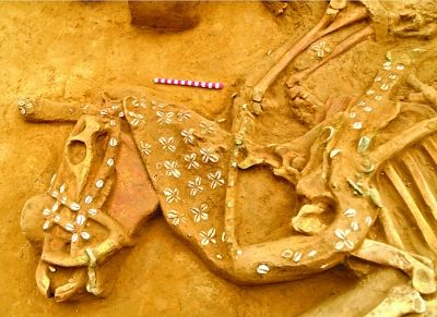 河北行唐故郡東周遺址車馬坑里用海貝裝飾的馬