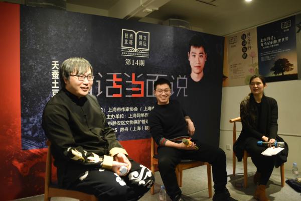 1月18日晚,天蠶土豆做客上海陜西北路網(wǎng)文講壇2018開年第一講,與縱橫文學(xué)高級(jí)副總裁縱橫中文網(wǎng)創(chuàng)始人邪月一道,圍繞玄幻文學(xué)作品及其創(chuàng)作,進(jìn)行了一場(chǎng)生動(dòng)有趣的對(duì)話。資深媒體人莫琪擔(dān)任主持。