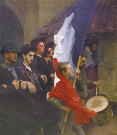 學(xué)院舉辦的沙龍展,也為18、19世紀(jì)法國(guó)藝術(shù)的繁榮做出很大貢獻(xiàn)。1737年起,學(xué)院每年在盧浮宮的“方形沙龍”大廳舉辦“皇家繪畫(huà)與雕塑學(xué)院沙龍展”,簡(jiǎn)稱“沙龍展”。沙龍?bào)w制為藝術(shù)家提供了新的欣賞者和贊助者,使藝術(shù)界更活躍、多元,也形成新的藝術(shù)取向,影響著藝術(shù)的發(fā)展。展覽中觀眾將欣賞到在沙龍中獲得聲譽(yù)的重要作品,包括安格爾的《朱庇特與忒提斯》、歐仁·德拉克洛瓦的《弗朗索瓦·拉伯雷像》、卡米耶·柯羅的《意大利風(fēng)光》,還有帕斯卡·達(dá)仰—布弗萊的《應(yīng)征入伍者》(見(jiàn)圖)和其他一些在全世界享有盛譽(yù)的藝術(shù)作品。這些作品得以保存,得益于國(guó)家通過(guò)征訂、購(gòu)買(mǎi)沙龍展作品給予藝術(shù)家們的鼓勵(lì)。購(gòu)買(mǎi)和征訂的作品收藏于法國(guó)國(guó)家造型藝術(shù)中心。