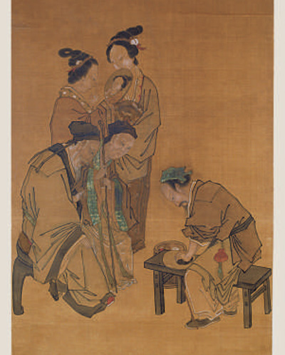 圖為中國(guó)國(guó)家博物館藏清代《磨鏡圖》