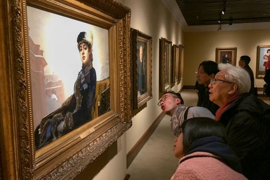 2017年12月14日至2018年3月4日,中俄聯(lián)合主辦的“巡回展覽畫派:俄羅斯國立特列季亞科夫美術(shù)館珍品展”在上海博物館展出。圖為中國觀眾如癡如醉地觀看克拉姆斯柯依的油畫《無名女郎》。