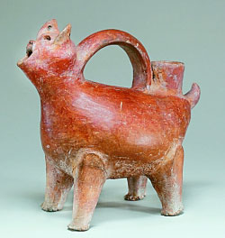 作為盛水放酒的器皿,匠人的精巧設(shè)計(jì)使我非常具有實(shí)用性:我的尾部有一個(gè)圓柱形口供人注水,張開(kāi)的嘴巴可以使水流出,而且我仰頭張嘴的設(shè)計(jì),可確保在平放的時(shí)候不漏水;我的背部有把手,便于人們提放;我的腹部突出、腿部粗壯的設(shè)計(jì),巧妙地?cái)U(kuò)大了盛水的容積;最讓我得意的是,我能依靠四足穩(wěn)穩(wěn)站立,可以用火加熱肚子里的液體。