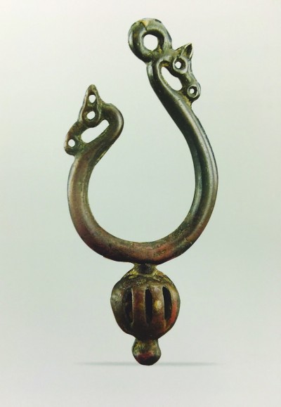 所見最早的金玉相結(jié)合的器皿——浙江省博物館供展的“玉耳金舟”。有寶雞市考古研究所供展的“金柄鐵劍”,是用黃金和鐵這兩種當(dāng)時最為貴重的金屬鑄造的。還有些動物造型的金飾,甚是精妙。