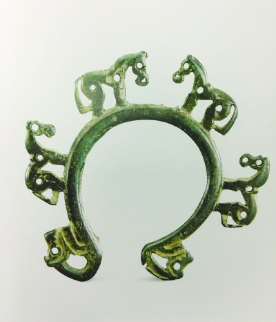 下一個展廳便是展覽的尾聲“文化融合,華夏認同”,隨著社會動蕩、戰(zhàn)爭頻仍,“夷蠻戎狄”不斷內(nèi)遷,與諸夏部族交錯雜居,促進了民族大融合與文化交流。