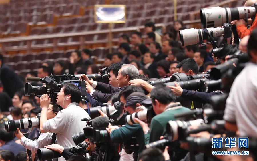 3月14日,全國政協(xié)十三屆一次會議在北京人民大會堂舉行第四次全體會議,選舉政協(xié)第十三屆全國委員會主席、副主席、秘書長和常務(wù)委員。這是記者在會場采訪。新華社記者 張玉薇 攝