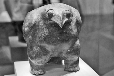 這是一只有著胖胖腿的鷹,尾巴又和兩只前爪巧妙地構(gòu)成了鼎的三足。鷹的胸部和身體占鼎身的主要部分,內(nèi)容即胸懷。陶鷹鼎的造型,帶著上古的氣息,也帶著中原質(zhì)樸的民風(fēng)。但更神奇的是,它除了上古的王者之氣,又同時顯示出另一種很現(xiàn)代的氣質(zhì),用當(dāng)下的話說,就是“萌萌噠”。在這個層面,陶鷹鼎又可謂古典與現(xiàn)代的美妙融合。六千年前的造型藝術(shù)精湛至此,令人不禁贊嘆。