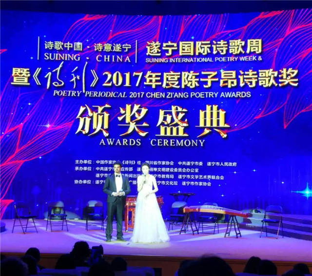 3月23日,由中國作家協(xié)會(huì)《詩刊》社、中共遂寧市委、遂寧市人民政府主辦,中共遂寧市委宣傳部、遂寧市文化廣電新聞出版局、遂寧市文學(xué)藝術(shù)界聯(lián)合會(huì)承辦的《詩刊》2017年度陳子昂詩歌獎(jiǎng)?lì)C獎(jiǎng)會(huì)在遂寧國際會(huì)展中心隆重舉行。來自國內(nèi)外的著名詩人、批評(píng)家、翻譯家齊聚觀音故里。