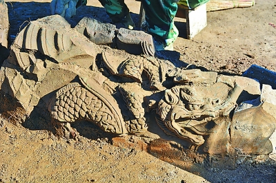 吉林安圖寶馬城金代長白山神廟遺址出土的鴟吻一側(cè)龍紋 圖片來源:全國十大考古新發(fā)現(xiàn)評選活動辦公室