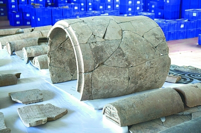 陜西西安秦漢櫟陽城遺址出土的巨型筒瓦 圖片來源:全國十大考古新發(fā)現(xiàn)評選活動辦公室