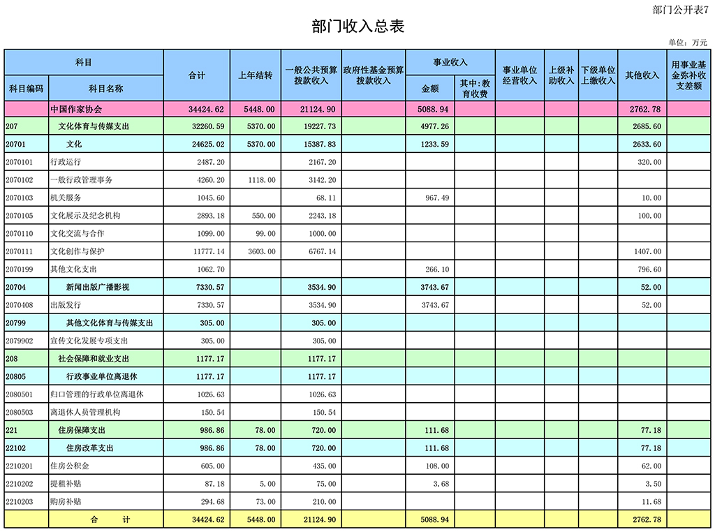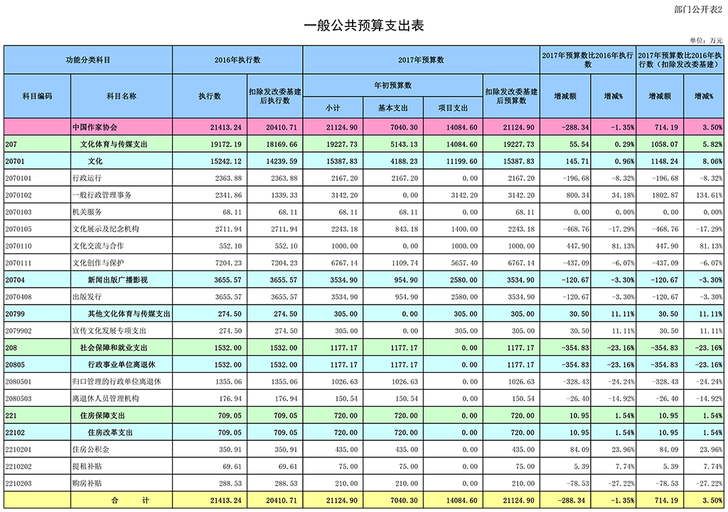 七、文化體育與傳媒(類)文化(款)行政運(yùn)行(項(xiàng)):指中國作協(xié)本級(jí)用于保障機(jī)構(gòu)正常運(yùn)行、開展日常工作的基本支出。