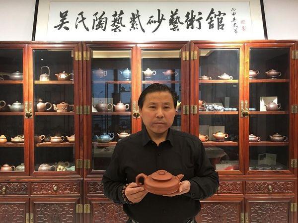 宜興有天土,吳門出陶人。繼陶瓷、紫砂已成國(guó)藝。一盈把握,諸子盡在一掬之間,上兌莊老之露、下泡儒佛之泉。禪意不看紅塵事,一捧紫砂釋天機(jī)。在這一系列榮譽(yù)的背后,是吳海龍老師最紫砂藝術(shù)的喜愛,對(duì)中國(guó)非物質(zhì)文化遺產(chǎn)繼承的責(zé)任心,促使他孜孜不倦,一往無(wú)前的去專研,通過(guò)各種機(jī)會(huì)途徑與紫砂界的大師們合作交流,拓展他的視野和創(chuàng)作靈感。與此同時(shí),他積極走出國(guó)門,讓紫砂文化在一帶一路的東風(fēng)下展示出他獨(dú)特的魅力,吸引著國(guó)際紫砂藝術(shù)愛好者的目光。
