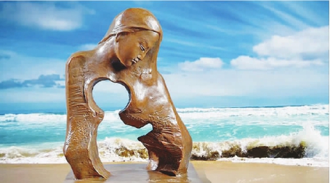 雕塑與其他藝術(shù)形式相比有一個(gè)鮮明的特點(diǎn),即其特殊的立體形式,這種立體形式讓其與周圍環(huán)境的深度互動(dòng)成為可能,而如何發(fā)揮其優(yōu)勢(shì),讓其在固定的空間中發(fā)揮藝術(shù)魅力同時(shí)又增強(qiáng)城市空間的審美性,就成為雕塑展覽的新課題。在“公共雕塑邀請(qǐng)展”中,策展人盧征遠(yuǎn)特意選擇了22位知名雕塑家的36件具有象征意義的雕塑作品參展,配合著博鰲融創(chuàng)·金灣的碧海、沙灘,以獨(dú)特的設(shè)計(jì)思路體現(xiàn)出中國(guó)傳統(tǒng)審美品格與現(xiàn)代化開(kāi)放眼光的統(tǒng)一,追尋著海上絲綢之路路線的大體布局,展示出藝術(shù)家對(duì)傳統(tǒng)文化的皈依和對(duì)現(xiàn)代“絲路”文化的期待。