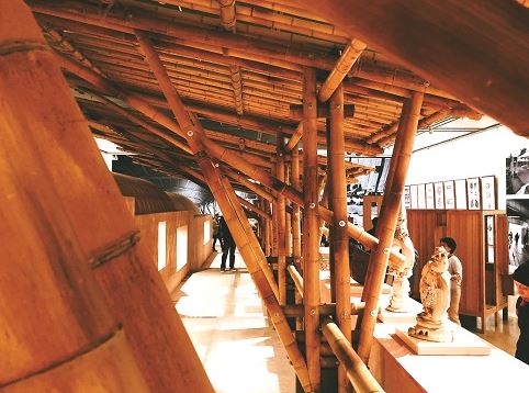 學院在教學創(chuàng)作中號召師生扎根生活,倡導“勞作上手、讀書養(yǎng)心,像哲人般思考、如工匠般勞作”的理想,就是希望能繼民學精神,再興鄉(xiāng)土生活,借藝術讓人民的生活更美好?!拔铱椢以凇薄氨就翣I造”“天工開物”所呈現(xiàn)的便是貫徹這一理念的教學最新現(xiàn)場。在“我織我在”的空間中,數百條由師者編織的千變萬化的繩結里,貫穿著數組學生的編織作品,讓觀者體驗到“身心發(fā)動、情義直觀”的東方藝術真諦,也感悟到上手的技藝與造物思想的關聯(lián);“天工開物”則向我們展現(xiàn)了陶瓷、漆器、玻璃、首飾等與棲居空間相融相依的手工藝品;“本土營造”聚焦于“復興融通自然、城市、建筑和造園的整體性”之大命題,這個極具泥土氣息的營造現(xiàn)場,背后凝聚了大量的鄉(xiāng)土調查與實踐摸索。