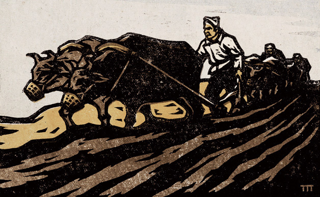 至今,人們對(duì)在20世紀(jì)30年代開始從事木刻藝術(shù)的版畫家都崇敬有加,因?yàn)樗麄円贼斞赶壬乃枷霝樽约簩ふ疑鐣?huì)火光的精神燈塔,他們通過簡(jiǎn)陋的刻刀與木板,挑開了罪惡、揭露了黑暗、喚醒了民眾。但人們?cè)谶@些作品里,也感到了那么一點(diǎn)兒不足,這就是這些畫作總擺脫不了歐洲版畫的某些痕跡,除了面孔和樣式不太中國(guó),人們還感覺到了這些青年作者在作品里無(wú)形之中流露出來的某種俯視民眾的小知識(shí)分子氣息。魯迅先生曾寄予這些青年能夠從中國(guó)民間藝術(shù)中汲取豐厚的民族化養(yǎng)分,但這種寄予在青年版畫家創(chuàng)作中一時(shí)還很難著床。畢竟,生活在上海亭子間的這些青年版畫家,還不可能真正深入了解掙扎在社會(huì)底層的民眾,更不可能懂得他們身上所深蘊(yùn)的民族藝術(shù)根脈。