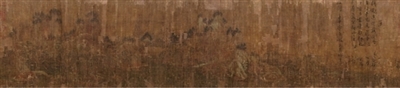 第一,畫幅本身上有北宋人劉唐老的題跋。這則題跋,從書風(fēng)的時(shí)代風(fēng)格判斷,許多專家和學(xué)者均認(rèn)為當(dāng)屬宋人風(fēng)格無疑。所以這張畫的下限應(yīng)該是北宋。