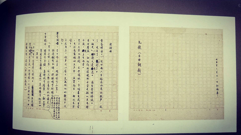 聞一多去世后,他在清華大學(xué)的同事兼摯友、也是知名作家的朱自清在報(bào)紙上看到了這一噩耗,朱自清悲痛不已,多次出席聞一多紀(jì)念會(huì)介紹聞一多的事跡及貢獻(xiàn)。為表達(dá)對(duì)聞一多的紀(jì)念,朱自清在生命最后的時(shí)光里克服種種困難整理了聞一多的作品,集結(jié)成《聞一多全集》并為之作序,1948年8月底,《聞一多全集》由開明書店出版。全集中收錄了這篇《九歌(古曲翻新)》。作為聞一多生前最后的創(chuàng)作,《九歌(古曲翻新)》可謂是一曲生命的絕唱,承載著聞一多不可多得的文學(xué)才情和光芒。