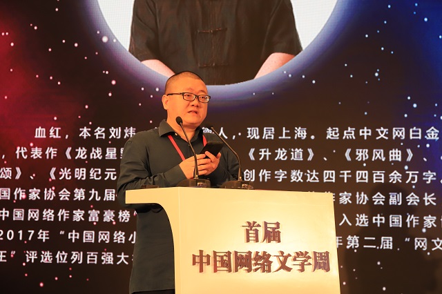 我是血紅,一個(gè)寫了十六年網(wǎng)文,還在堅(jiān)定、堅(jiān)持地努力創(chuàng)作的網(wǎng)絡(luò)作者。非常榮幸參加這次盛會(huì),受邀作為作家代表發(fā)言,于是也想說一些感觸。