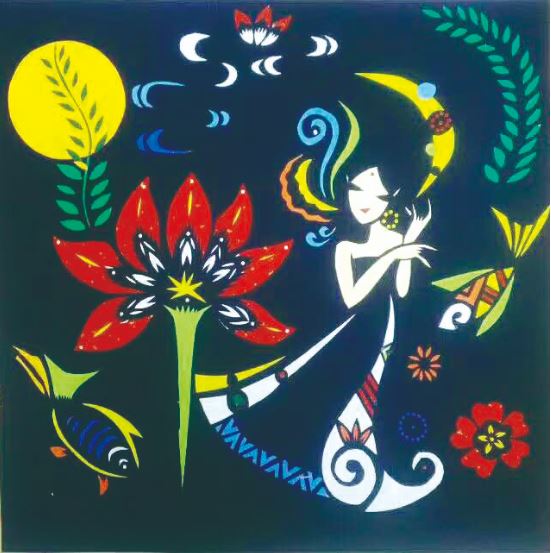 郝明森是將“雅”與“俗”兩個字合二為一的代表。他平時忙于工作,工作之余就“玩”剪刀。他的剪紙作品離不開大巴山區(qū)的節(jié)日風(fēng)俗、人生禮儀,他在參加民俗活動中尋找靈感,把眼睛看到的變成剪紙作品——窗上貼的喜慶窗花、門上貼的福字、繡花的原始底樣,那些圖案有山有水,有花有草,有魚有鳥,有的還抽象化以寄托一種信仰或期望?!斑@幅是1993年在學(xué)校參加全國剪紙大賽剪的,原作足有15米長?!焙旅魃钢环麨椤栋倥D》的剪紙作品說:“我父親是個養(yǎng)牛專業(yè)戶,我長期與牛作伴,就琢磨著如何讓形態(tài)各異的牛變成我的剪紙作品,這叫捕捉靈感出作品吧。”