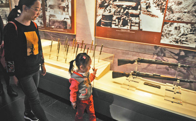 一對母女在參觀滇西抗戰(zhàn)紀(jì)念館??姵瑪z(人民視覺)