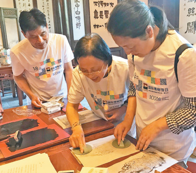 觀眾正在體驗(yàn)油墨拓印。嚴(yán) 薇攝