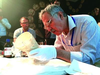 5月24日上午,隨著阿富汗國(guó)家博物館文物修護(hù)專(zhuān)員阿卜杜拉小心細(xì)致地操作,有著蜂巢紋理的大口玻璃杯終于完成了最后的修復(fù),于次日首次在中國(guó)與公眾見(jiàn)面。由于種種原因,此前玻璃杯一直沒(méi)有修復(fù)完好,此次完成修復(fù)使這批阿富汗文物在鄭州的展覽第一次實(shí)現(xiàn)了“全家福”亮相。