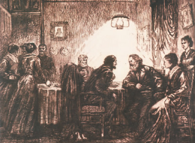 馬克思一家接待巴黎公社流亡者(銅版畫) 曹建峰
