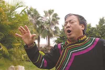 “遙遠的 語詞的海洋里/你的深睡成為太初的風景/醒來的日子生長著等待/女人一聲慘烈的呼救/……//我們這群牛羊和石頭的主人/無法繼續(xù)承受更大的驚飾/你的愛撫帶著過多的恩典/我們用紊亂的足印/欺騙你 你的光芒/于是像透明的荊棘一樣/刺穿我們死去的印跡/我們偷偷將祝福念成咒語/……//背棄大山 永遠/我們飲鴆止渴?!保ā度丈瘛罚芭Q蚺c石頭的主人”、“紊亂的足印”、“偷偷將祝福念成咒語”,在舊有的文化和生存環(huán)境日漸受到?jīng)_擊時,一代人身上原有的生長模式、習俗、文化已經(jīng)出現(xiàn)了斷裂,阿庫烏霧的詩里常有對于文化傳承的一種思索?!拔业纳锰幵谝妥鍌鹘y(tǒng)文明式微的時代,全方位文化的、母語的脫落正在發(fā)生,但我又不能太大刀闊斧地去批判這些行為,自然地出現(xiàn)了‘偷偷將祝福念成咒語’,這是任何一個有歷史底蘊的民族、有自我歷史修復能力的民族一代代傳下去的品質,當一個祝福越來越孱弱、越來越蒼白時,我們是不是可以用咒語來祝福呢?那么最終任何一個批判反思其實都不是絕望,而正是充滿了希望,‘日神’,意即曾經(jīng)開始過我們文明的曙光的神,今天沒有離我們而去。”